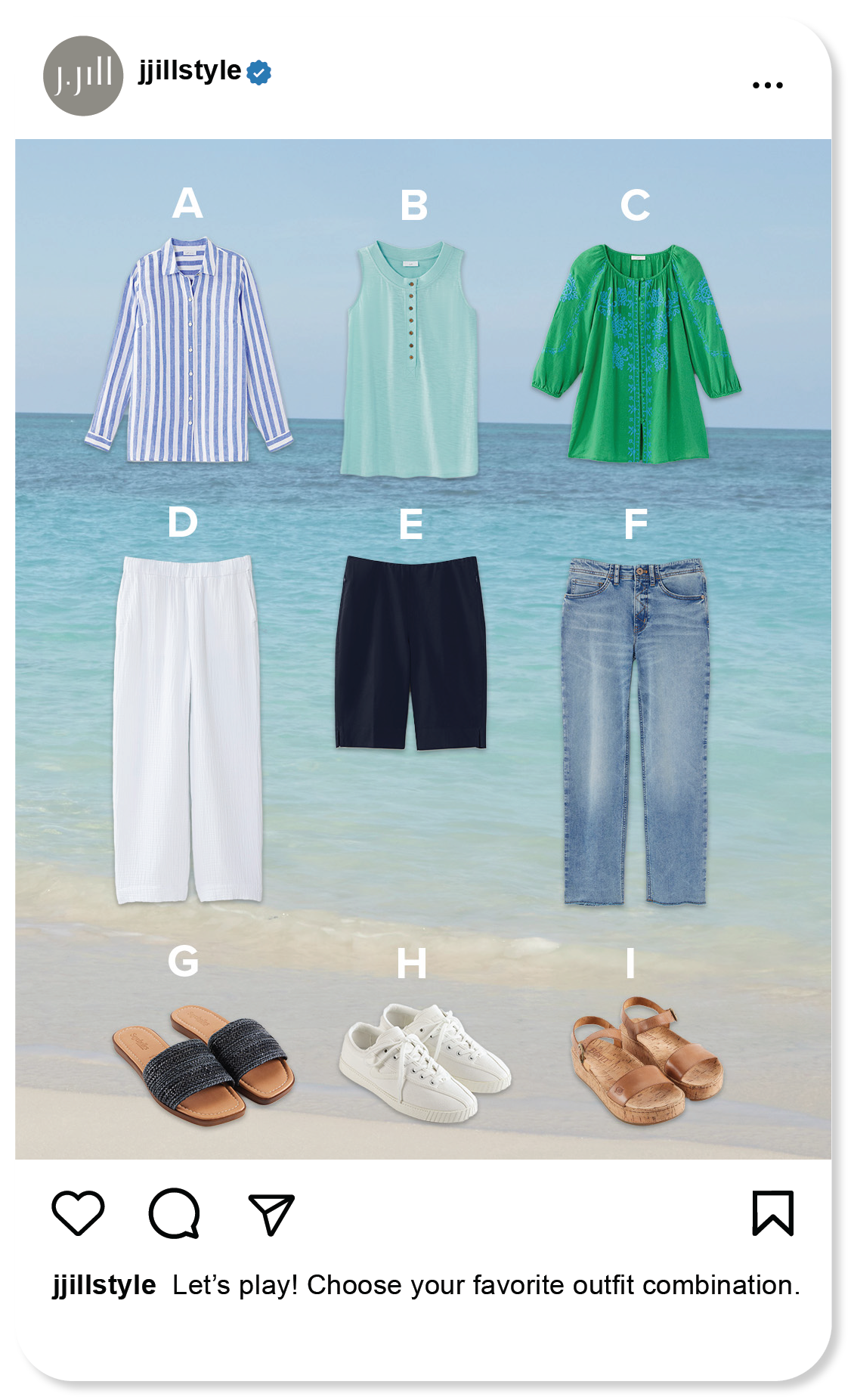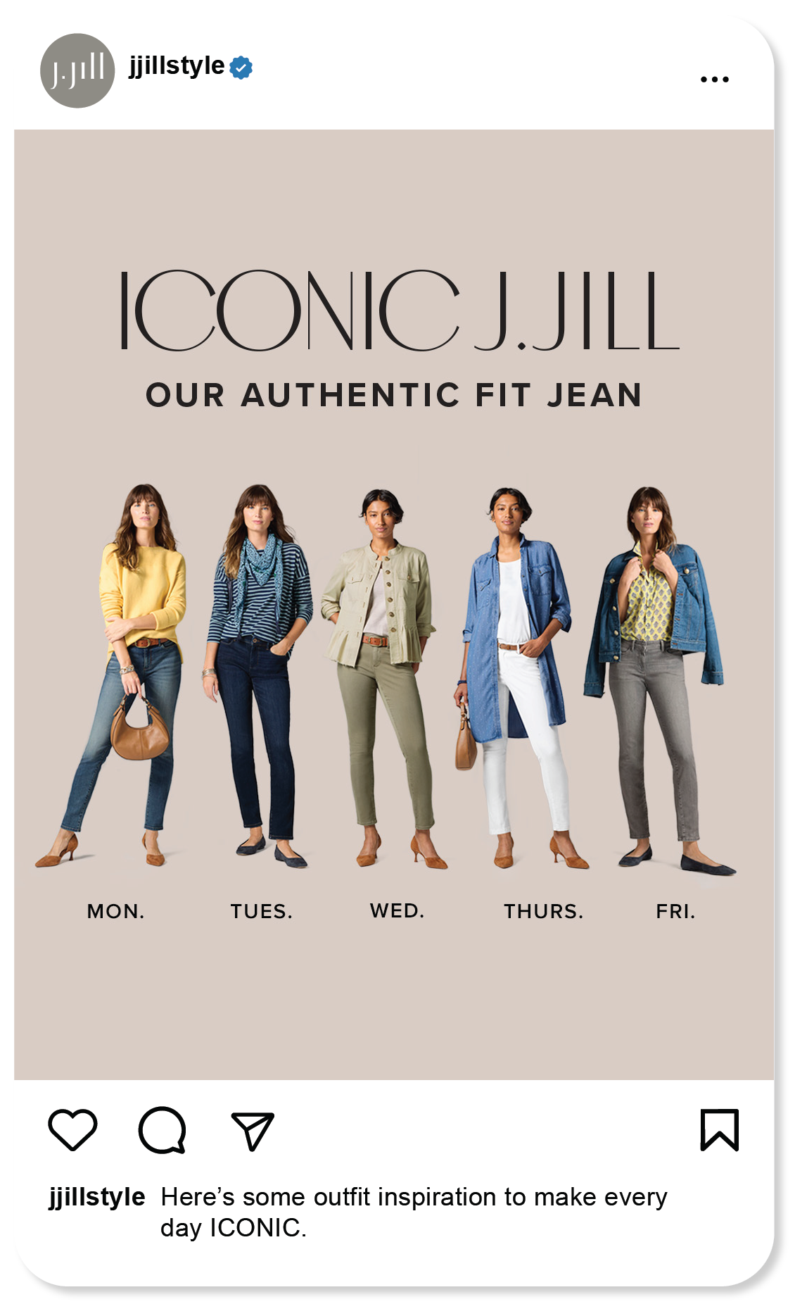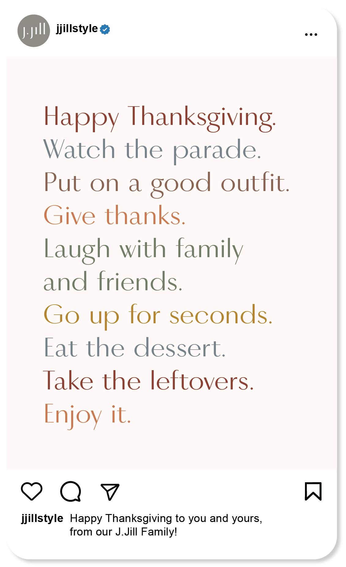 From concept through execution, I developed seasonal social content for J.Jill, including single-image posts and multi-slide carousels that are grounded in brand values and built with a social-first mindset. Each piece was crafted to drive meaningful engagement, elevate digital presence, and translate seasonal narratives into scroll-stopping visual moments.