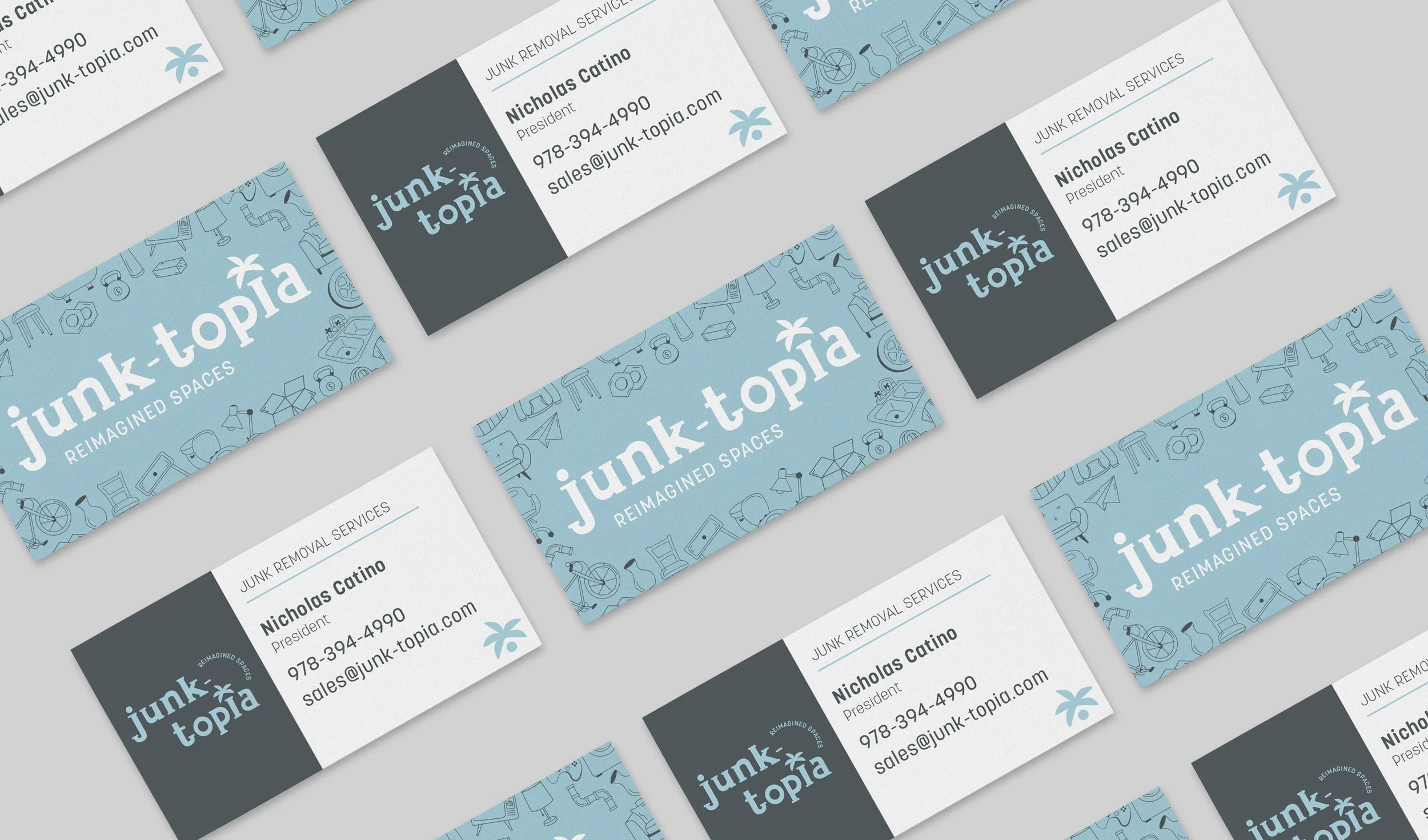 I was given the exciting opportunity to develop a visual identity for Junk-Topia, a start-up junk removal company looking to establish a stand-out brand in a competitive local market. Guided by the slogan ‘Reimagined Spaces,’ the goal was to build a brand that felt reliable and professional while still energetic and approachable, reflecting the company’s mission to make decluttering and clean-outs simple and stress-free for customers.